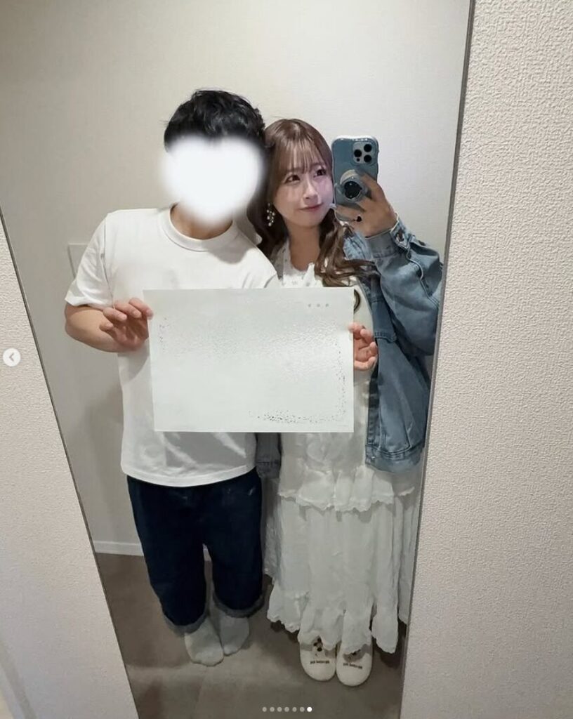 2026年4月10日のインスタグラム更新で、あいまるさんは幸せいっぱいの表情とともに、かねてよりお付き合いしていた男性との入籍を報告しました。