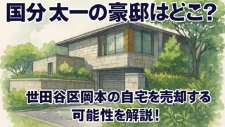 国分太一さんの豪邸はどこなのかを丁寧に解説し、具体的な所在地と周辺環境の特徴をわかりやすくまとめました。国分太一さんの豪邸の所在地である東京都世田谷区岡本の地理学的特性や、住宅の設計思想、近隣の著名人の居住状況なども併せて立体的に整理します。さらに、世田谷区岡本の不動産事情から国分太一さんの豪邸の目安価格を推定し、最新の報道や動向を踏まえて売却の可能性を多角的に検討します。国分太一さんの豪邸がどこか知りたくて検索するニーズに応え、読者が知りたいポイントに絞って事実関係と背景の因果を丁寧に紐づけます。所在地である東京都世田谷区岡本の地形や生活利便性も取り上げ、国分太一さんの豪邸はどこなのかという疑問に対して、地域の文脈から納得感のある答えを提示します。記事全体を通して、世田谷区岡本の具体的な魅力と国分太一さんの住環境の現在に関する情報を過不足なく伝えます。