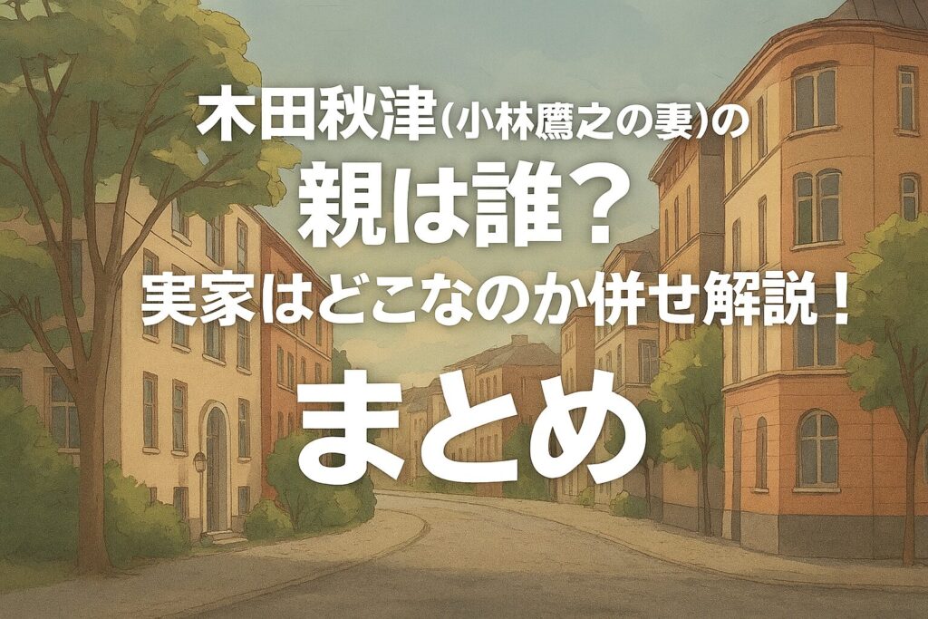 この記事が、木田秋津さんの親や実家についての理解を深める一助となれば幸いです。